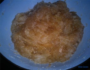 3. Quitar las pepitas, escurrir bien y pesar la pulpa. Si pesase 1 Kg. por ejemplo, echaríamos entre 800 y 900 gr. de azúcar (según gustos).