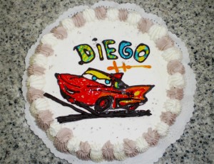 Elaborar esta tarta de cumpleaños es tan sencillo como saber los dibujos favoritos de la o el cumpleañero. Se compone de un bizcocho de chocolate, trufa y nata, ingredientes con los que es fácil acertar con ciertas edades. Y el dibujo es muy sencillo de hacer, incluso os pueden ayudar las y los peques de la casa.