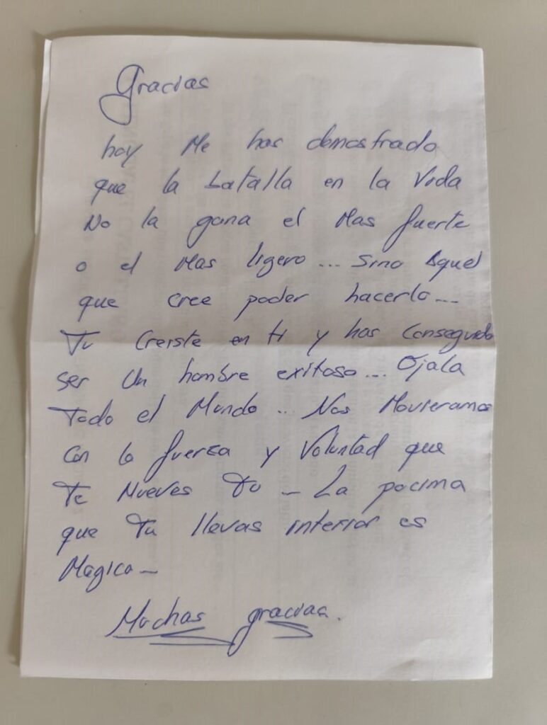 Hoy me has demostrado que la batalla en la vida no la gana el más fuerte o el más ligero, sino aquel que cree poder hacerlo.