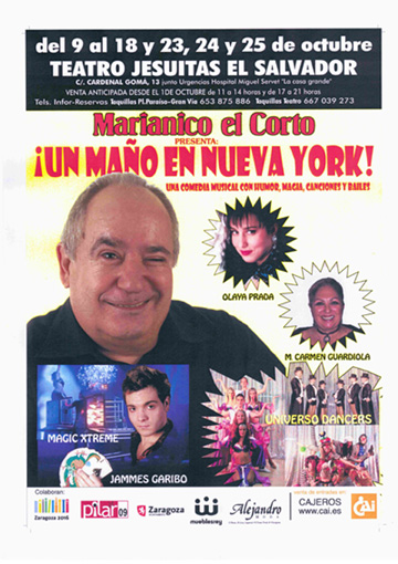 Marianico el CortoInmersos ya en una Zaragoza pre-fiestas del Pilar, acudimos a la cita de Marianico el Corto en el Teatro de los Jesuitas – El Salvador, donde cada año se representa una obra, y en esta ocasión se trata de «Un maño en Nueva York». Tan solo con estrecharle la mano, su acentuada naturalidad marcó el compás de la entrevista «Es un placer tenerte aquí», dijo, confirmando la total predisposición para con nuestra revista.