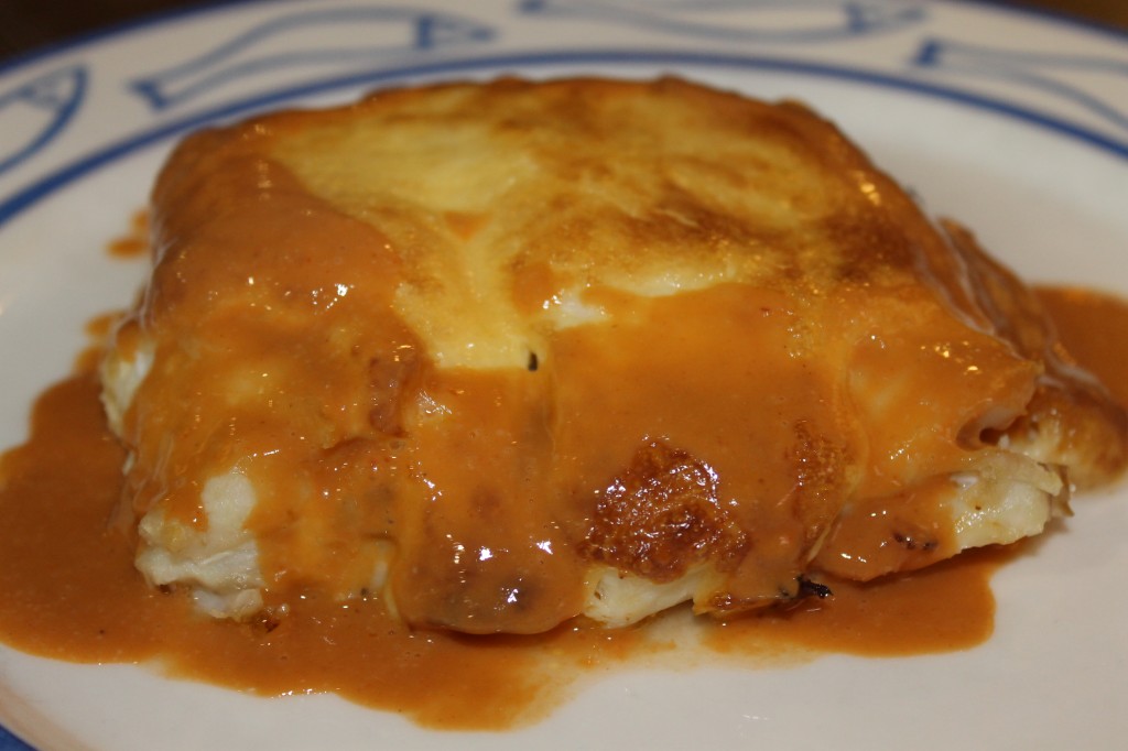 Emplatado: Cortar cada lomo en 4 trozos y echar un poquito de perejil. Servir 2 trozos por cabeza. Para el cabeza hueco, los pequeños. La salsa se sacará en su salsera. ‘Regar con un buen Albariño o en su defecto Ribeiro (sin abusar), jamás con agua, aunque esta sea embotellada, y que aproveche.
