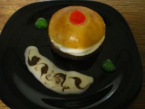 - Cuando la masa haya doblado su tamaño, se pinta con huevo o leche (o una mezcla de las dos) y se pone un punto de crema pastelera donde se colocará media guinda.