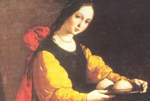 Nacida en Catania o en Palermo hacia el año 230, de nobles y ricos padres, dedica su juventud al servicio de Dios, a quien no duda en ofrecer su vida y su virginidad.
